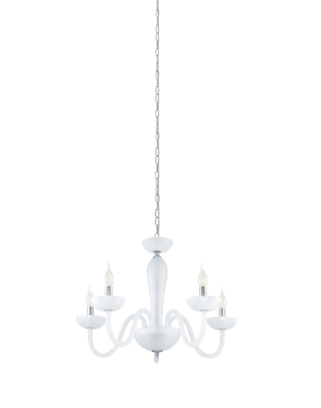 FALCADO 1 5‑Lamp Glass Pendant Chandelier – Chrome Steel & Satin Glass – E14 Base, 5×40W – 71cm Dia × 110cm H – Elegant Indoor Ceiling Lamping Fixture