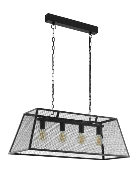 AMESBURY Pendant Light – Black Steel Bar Frame with 4×E27 Sockets – 95cm ×38cm ×110cm – Vintage-Industrial Linear Chandelier – 2‑Year Warranty