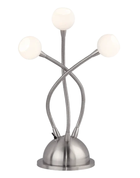 Compact table lamp with three integrated G4 halogen capsules included, 20 W total, approx. 300 lm each at 2700 K; IP20 Class II.