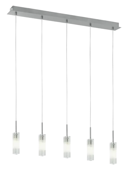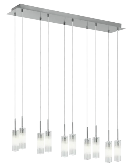 The ALESSA pendant light combines contemporary design with refined materials, featuring a satin nickel steel enclosure complemented by a clear brilliant glass shade with a satin finish. This stylish pendant stands 1100 mm tall and has a compact width and length of 115 mm, making it a versatile lighting fixture