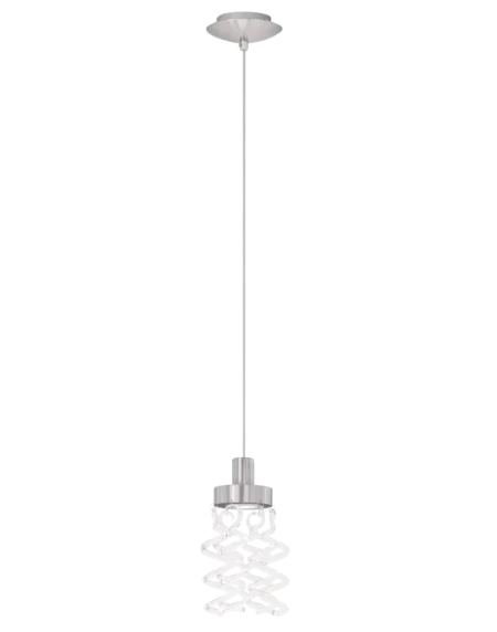 Sleek BELMONTE pendant light with satin nickel steel and clear glass shade, featuring a single GU10 halogen lamp for warm indoor lighting.