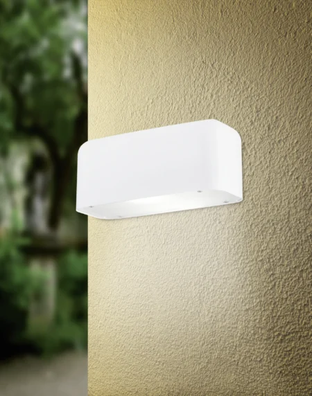 The EGLO 92337 AVESIA outdoor wall light features a sleek white zinc-plated steel design with a transparent shade and warm white LED illumination, offering practical and stylish lighting for exterior spaces.
