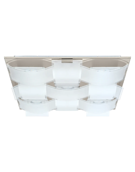 Compact indoor recessed downlight in chrome with white opal glass, GX53 7 W lamp included, warm white 2700 K, IP20, 105 mm cutout and 50 mm depth for sleek ceiling installs.