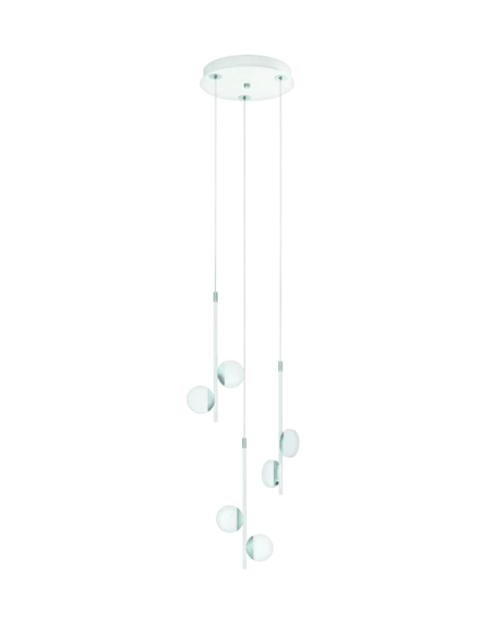 OLINDRA96931 LED Cascade Pendant – 6‑Light Satin-White & Chrome LED Cluster (1,500lm, 3,000K), Height-Adjustable to 1.5m, Dimmable, 5‑Year Warranty