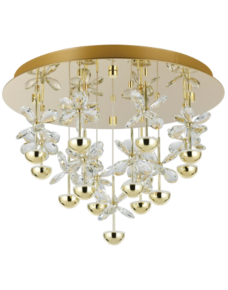 PIANOPOLI3 LED Ceiling Lamp – 50cm Ø × 36.5cm H, Brass Steel with Hanging Crystal Drops, 3,600lm Warm White (3000K), Dimmable, 5‑Year Warranty