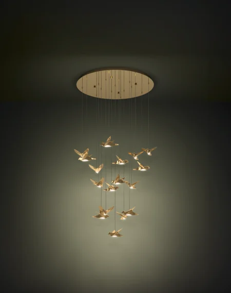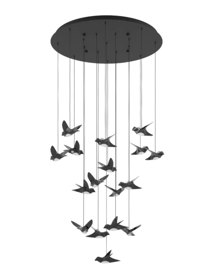 Paratebueno2 17‑Light Oval LED Pendant – Black Steel Canopy with Brass-Coloured Bird Shades, 1.48×0.26×2.20m Adjustable, 6460lm, 5‑Year Warranty