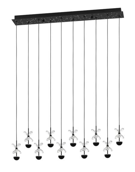 PIANOPOLI2 LED Pendant – 10‑Lamp Black Steel with Clear Crystal Glass, 87×12×150cm, 2800lm Warm White (3000K), Dimmable, 5‑Year Warranty