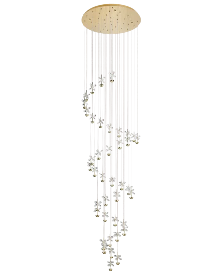 PIANOPOLI3 LED Cascade Pendant – Brass Steel & Crystal Glass, 3.34m (131.5″) Drop, Ø78cm (30.7″), 9,600lm Warm White, Dimmable – 5‑Year Warranty