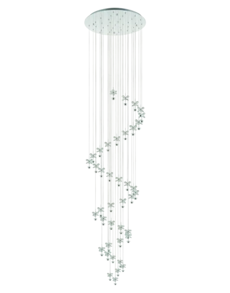 PIANOPOLI1 LED 40-Lamp Crystal Pendant – Chrome Steel Frame with Clear Brilliant Glass – Ø78cm × H334cm – 3200lm Warm White 3000K – Dimmable, 5‑Year Warranty