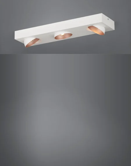 RONZANO 3‑Lamp LED Spot Ceiling Fixture – White & Rose‑Gold Steel/Aluminium Bar, 3×3.3W Integrated LEDs (≈3×340lm, 3,000K), 220–240V, 550×55×55mm, IP20, 2‑Year Warranty