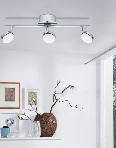 SALTO 3‑Light LED Ceiling / Wall Spot (Model95631) – Chrome Steel Finish, 3×4.4W Integrated LED (≈1920lm Warm White 3000K), 560×130×184mm, Dimmable, IP20, ClassII – 5‑Year Warranty