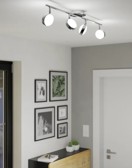 SALTO 95632 Chrome 4‑Spot LED Track Light – 29.9″ 17.6 W Bar, 1,960 lm Total, Satin-Plastic Shades, Dimmable, Modern Steel Design