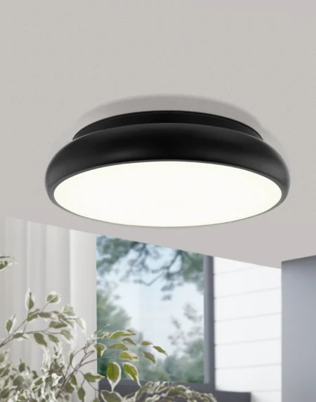 RUOTALE LED Ceiling Light – Black Aluminium & Steel with White Acrylic Diffuser, 36W Integrated LED (≈4400lm, 3000K Warm White), Ø450mm × 55mm Profile – IP20, ClassII – 5‑Year Warranty