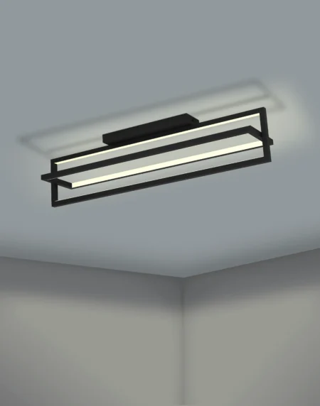 SIBERIA 78cm LED Ceiling Lamp – Black Steel with 4‑Panel White Diffuser, 4,600lm Dimmable (3,000–6,500K) with Remote, 78×16×23.5cm, ClassII, 5‑Year Warranty