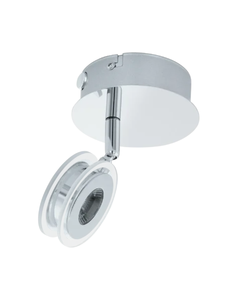 Sarolo 1‑Lamp LED SpotLamp – Chrome Stainless Steel & Clear Plastic, 3.3W Integrated LED (340lm, 3000K), 110mm Ø, Rocker Switch