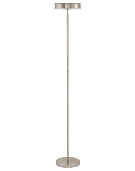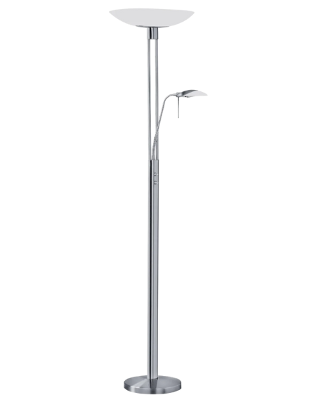 The EGLO BAYA-SONIC (90277) floor lamp combines functionality with refined modern design. Featuring a remote control, dual light sources, and elegant satin nickel steel with white satin glass, it delivers both style and convenience to contemporary interiors.