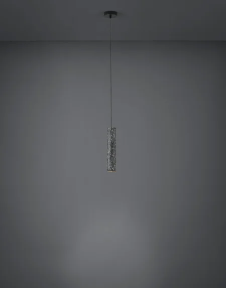 MENTALONA Pendant Light – Anthracite Steel & Terrazzo Glass – 1×GU10 LED – Ø10.5cm – Height 150cm – IP20 – Modern Crystal‑Design