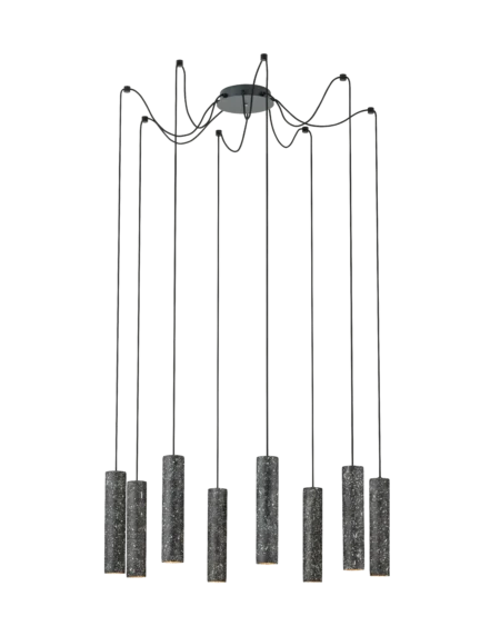 MENTALONA 8‑Lamp Pendant – Anthracite Steel & Terrazzo Glass Shades, 185mm Ø × 1,500mm Drop – 8×4.5W GU10 Warm 3,000K LED (2,760lm Total), Replaceable Modules