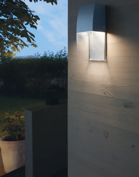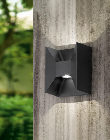 Minimalist Modern Design Slim, anthracite die cast aluminum body with two subtly faceted white plastic Lamp reflectors—perfect for contemporary porches, gates, or garden walls and blends with many exteriors. Bright Integrated Dual LEDs Two 2. 5W warm white (3000K) LED modules deliver a total of 360lumens; energy efficient with ~25,000hours