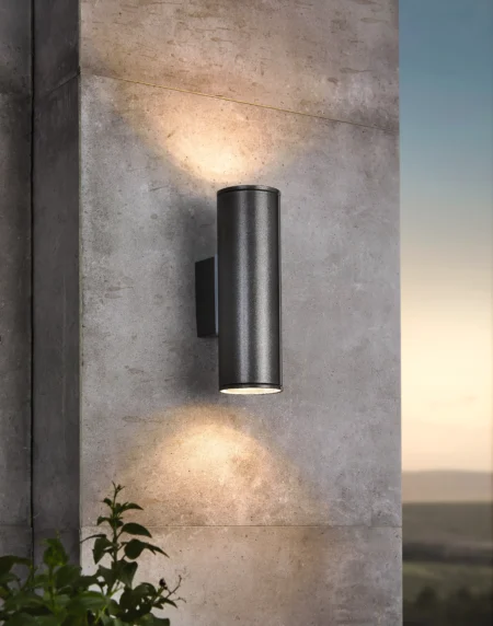 RIGA Anthracite Zinc-Plated Steel Outdoor Up‑&‑Down GU10 Wall Light