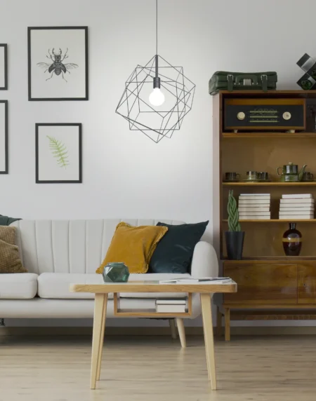 STAVERTON 1‑Lamp Pendant – Black Steel Twisted Wire Cage – 36.5cm Ø × 110cm Drop – E27 Socket, 60W – Modern Industrial Accent Lamp