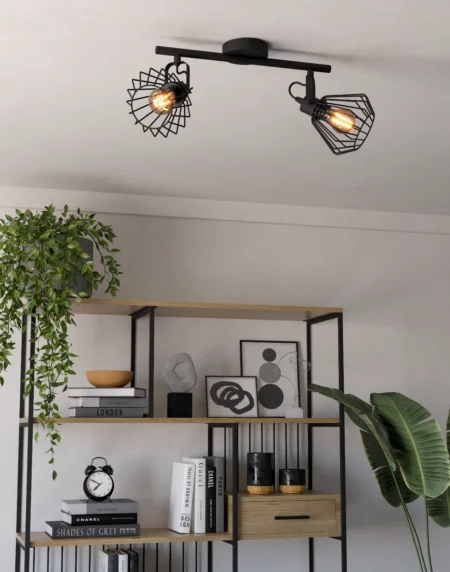 TABILLANO 2-Light Ceiling Spotlight – Black Steel Finish, E27 Sockets, 40W Max, 2-Year Warranty
