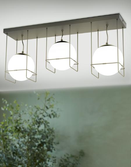 Versuola 3-Light Ceiling Light – Matte Black & Opal Glass, E27 Sockets, 40W Max, 2-Year Warranty