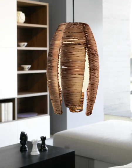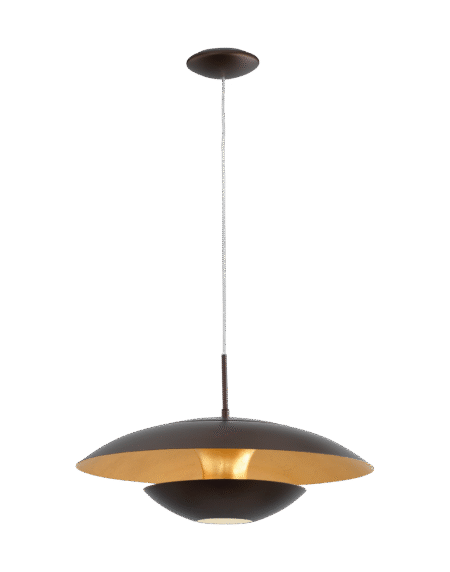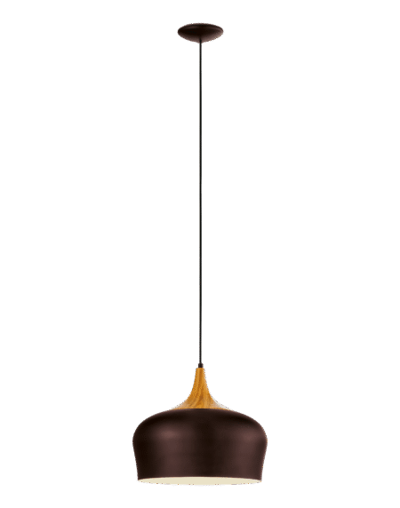OBREGON Pendant Lamp – Brown Steel Shade with Oak Accent & Cream Interior, E27 Socket (Bulb Not Included), Ø 350 mm × 1 100 mm Height, IP20 – Class II – 2-Year Warranty