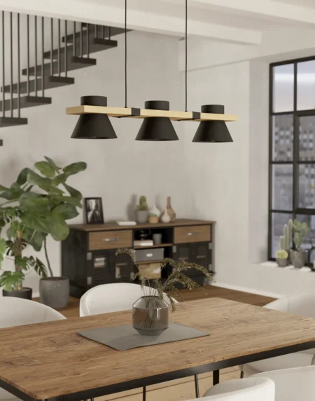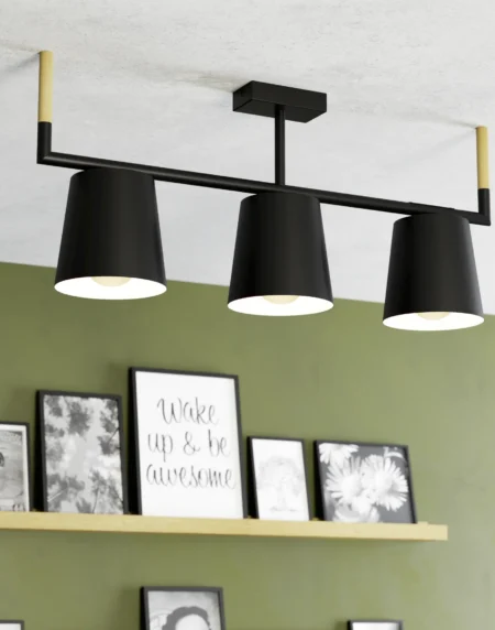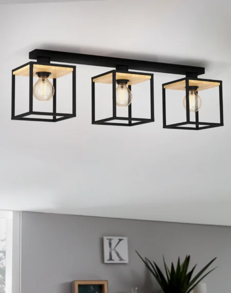 The EGLO LACEY (43611) is a vintage-inspired ceiling light designed for indoor spaces. Featuring a combination of steel and wood, it offers a warm, classic aesthetic with E27 AGL bulbs providing versatile lighting.