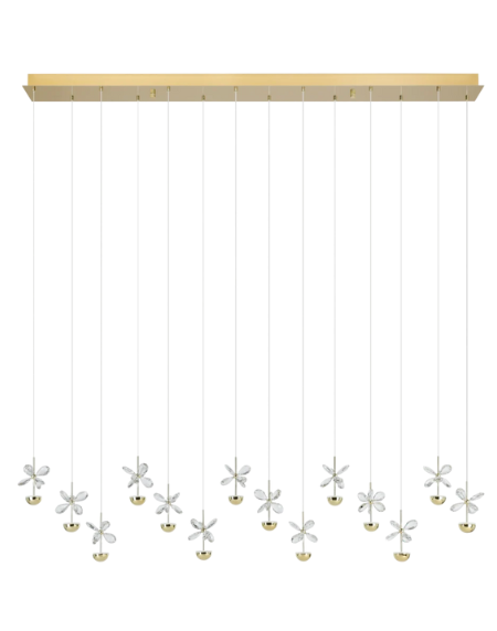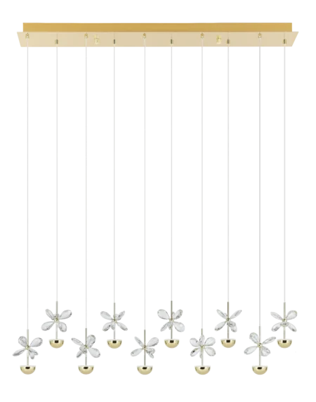 PIANOPOLI 3 390317 LED Pendant Light, 14‑Light Brass & Clear Crystal Cluster, 3000K Warm White, Dimmable – Luxe Modern Lighting for Dining & Living Spaces
