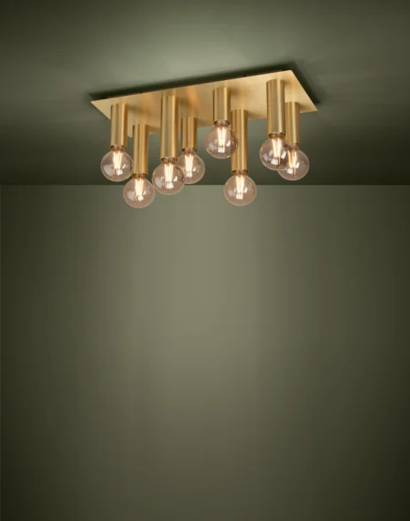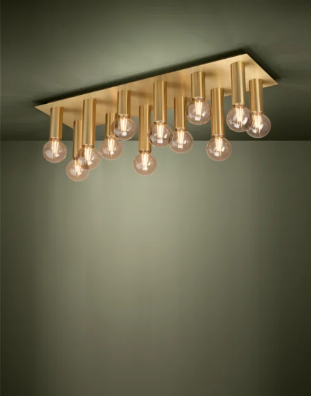 MARZENO Ceiling Light – Brushed-Brass Steel – 12×E27 Sockets – 930mm × 290mm × 215mm – IP20 – Modern Rectangular Cluster Design