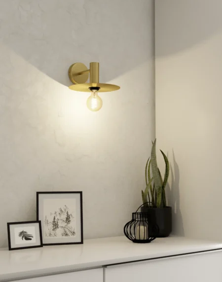 ESCANDELL Wall Light – Brushed Brass Steel Body – E27 Socket – Dimmable – Modern Minimalist Design – Ideal for Living Room, Bedroom, or Hallway – 2-Year Warranty