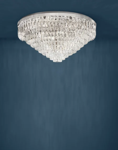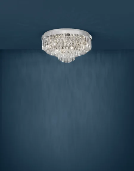 The EGLO VALPARAISO 1 (39493) is a grand and elegant ceiling light from the Stars of Light (Crystal & Design) collection. With its chrome-plated steel frame and clear brilliant glass crystals, this fixture radiates timeless sophistication — ideal for luxury homes, showrooms, and grand interiors.