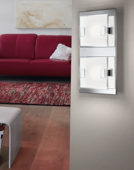 VICARO 93312 LED Wall or Ceiling Light – Chrome Stainless Steel & Satin Glass, 360lm Warm White (3000K), Replaceable LEDs, 10.6″×5.3″, 5‑Year Warranty