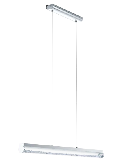TrevELO 93524 LED Linear Pendant Light – 24W Integrated (1,680lm, 3,000K), Chrome Steel & Clear/Satin Glass with Crystal Accents, 30″ × 2.8″ × 43″