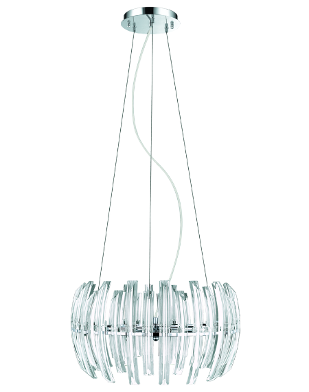 CORLANO 6‑Lamp LED Crystal Pendant – Chrome Stainless Steel with Clear Brilliant Glass – 47cm Ø × 166cm H – 6×5W Integrated LEDs (Total2700lm at 4000K)
