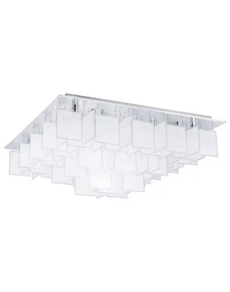 Square ceiling lamp in chrome with 8x included G9 halogen capsules (205 lm each, 2700 K), IP20 indoor.