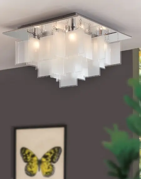 The EGLO CORLIANO (39016) ceiling light from the Stars of Light collection combines modern elegance with radiant crystal design. Its chrome stainless steel body and clear brilliant glass shade create a luxurious ambiance ideal for living rooms, bedrooms, or dining areas. The integrated 24W LED provides bright 4000K white light,