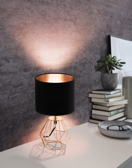CARLTON 2 Table Lamp – Copper Wire Frame with Black & Copper Fabric Shade, E14 Socket, 60W Max, Inline Switch – Ideal for Bedroom, Living Room, and Home Office