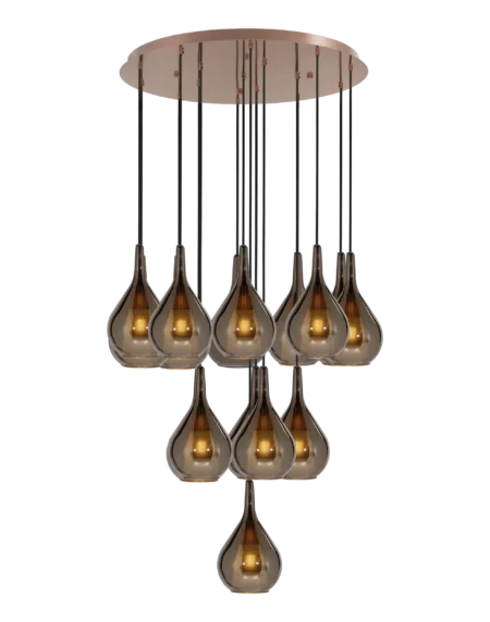 SANSEPOLCRO Pendant Lamp – 148 cm Length x 26 cm Width x 130 cm Height – 10 x E27 Sockets – 40W Max per Bulb – Shiny Copper Finish – Smoke Glass – Indoor Use