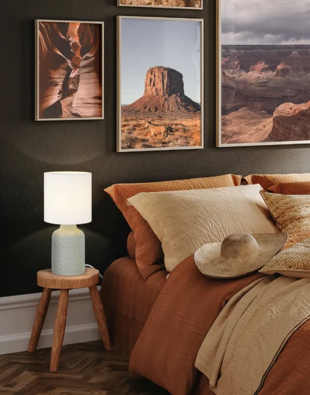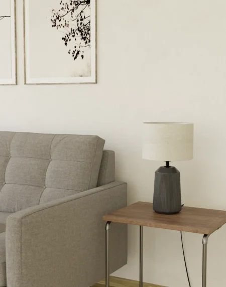 Stylish Ceramic Design Features a modern grey and beige ceramic base with a grey fabric lampshade, adding a warm and elegant touch to your interiors. Perfect Size for Tables Dimensions – Height 360 mm, Diameter 240 mm, Base Diameter 130 mm – Ideal for bedside tables, consoles, or desks. Functional