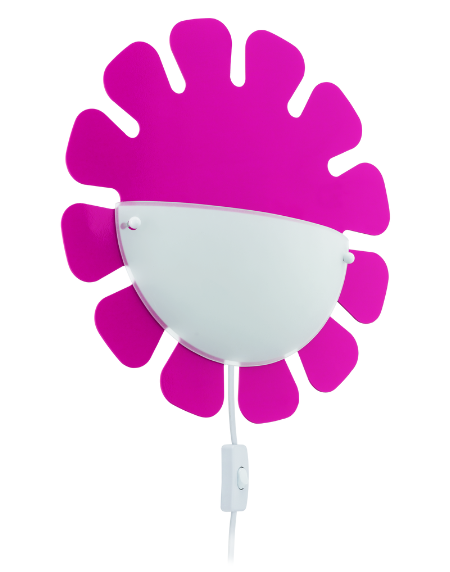 The EGLO 92149 LEONIE wall light features a playful pink steel frame with a white satin glass shade, creating a charming and gentle lighting option perfect for children's rooms.