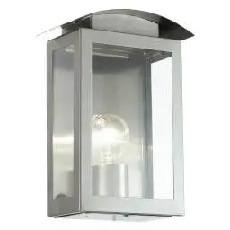 Baranello Outdoor Wall Lantern – Stainless Steel Finish, Clear Glass, 1×E27 Bulb Required, IP44 Weather-Resistant, 29cm Height