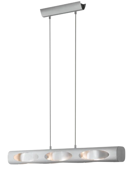 Modern ALAGON pendant light with brushed aluminium and chrome steel finish, featuring a G9 halogen lamp for warm indoor lighting.