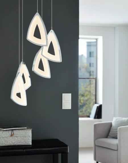 AMONDE95219 LED Pendant Light – Chrome Cast-Aluminium, 5LED Integrated Suspended Design, 3,645lm Warm White (3,000K), Dimmable & Adjustable, 5‑Year Warranty