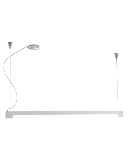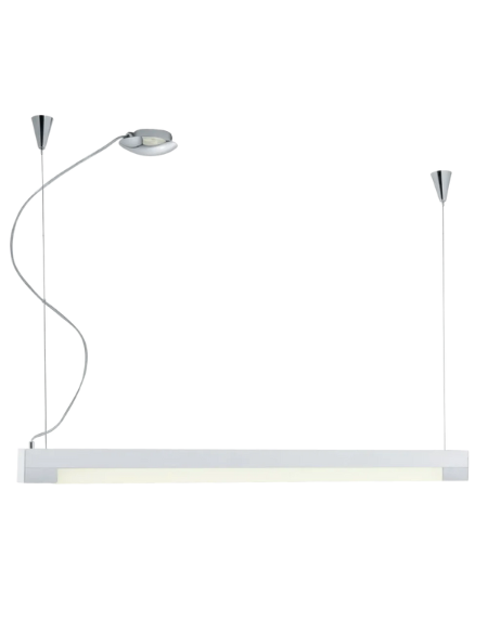 Modern TRAMP pendant light with brushed aluminium enclosure and white plastic shade, featuring one 21W G5 ESL T5 tube lamp.