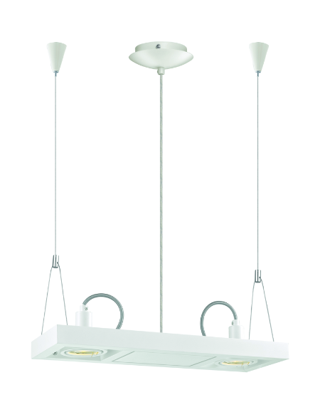 Vectus90688A 2‑Lamp Island Pendant – White Aluminum/Steel with Adjustable Cables, 2×GU5.3 MR16 50W Halogen, 1.4m Drop, IP20