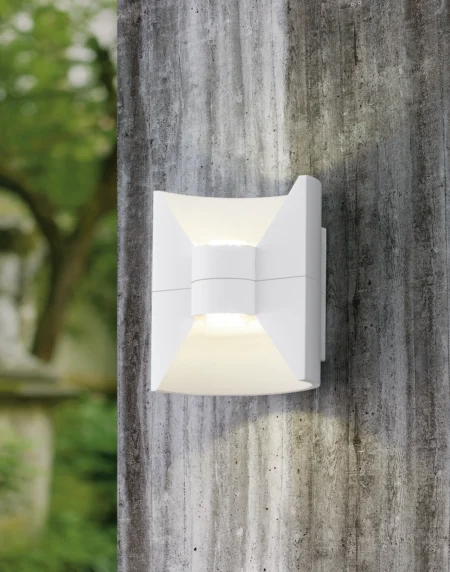 REDONDO 93367 Outdoor LED Wall Light – White Cast-Aluminium, 2×2.5W Integrated LEDs (360lm, 3000K), IP44, Corner-Mountable, 6.9″ H