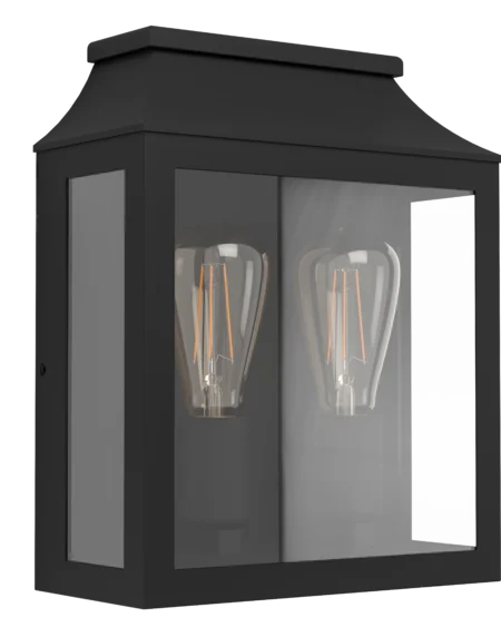 Stylish Outdoor Lantern Design – Features a black cast aluminium frame with transparent glass panels, showcasing your bulb choice and enhancing outdoor decor with a classic lantern look. Dual E27 Sockets – Equipped with two standard E27 bulb holders (bulbs not included), supporting a maximum of 60W each—perfect for LED,