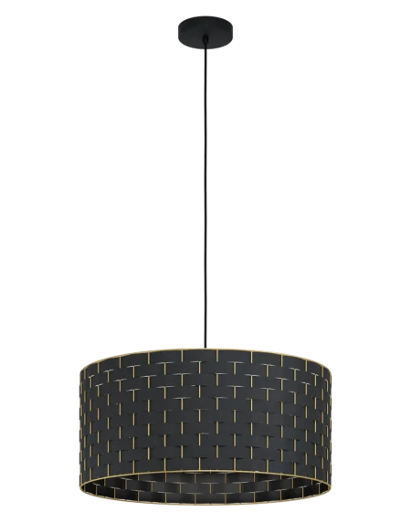 ESTEPERRA3‑Light Linear Pendant – Black Steel Bar with Black/Gold Fabric Shades, 715×160×1,100mm Adjustable Drop, 3×E27 Sockets, Dimmable – 2‑Year Warranty